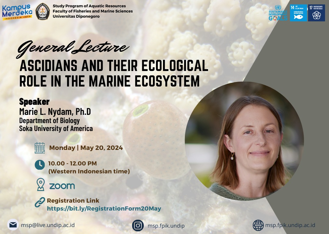 Program Studi Manajemen Sumberdaya Perairan, Departemen Sumberdaya Perairan, FPIK, Undip mengundang Anda untuk mengikuti Kuliah Umum dengan tema: “Ascidian dan Peran Ekologisnya dalam Ekosistem Laut”