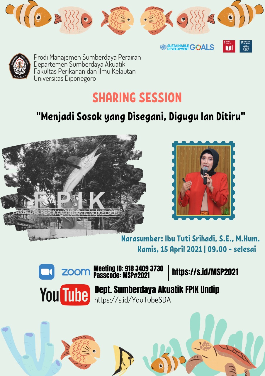 Program Studi Magister Manajemen Sumberdaya Perairan, Departemen Sumberdaya Akuatik, Fakultas Perikanan dan Ilmu Kelautan, Universitas Diponegoro menyelenggarakan Seminar Online MSP dengan tema Sharing Session “Menjadi sosok yang disegani, digugu lan ditiru yang dilaksanakan pada :