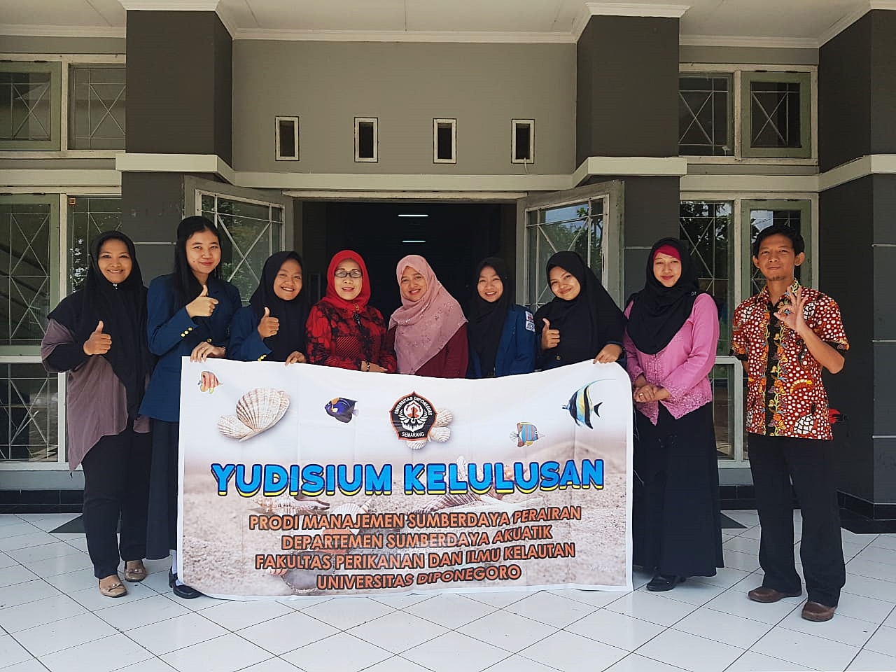 Semarang, 30 April 2019. Program studi Manajemen Sumberdaya Perairan telah melaksanakan rapat Yudisium Kelulusan untuk periode April 2019. Pada Yudisium kali ini, ada 4 Mahasiswa yang telah berhasil menyelesaikan masa studinya dengan kisaran Nilai Indek Prestasi Kumulatif (IPK) 3,48 – 3,69. Tiga dari keempat mahasiswa tersebut mendapatkan predikat Cumlaude. Harapan dari Program Studi Manajemen Sumberdaya Perairan adalah semoga ilmu yang telah didapat selama perkuliahan mendapatkan keberkahan serta bermanfaat bagi masa depannya.